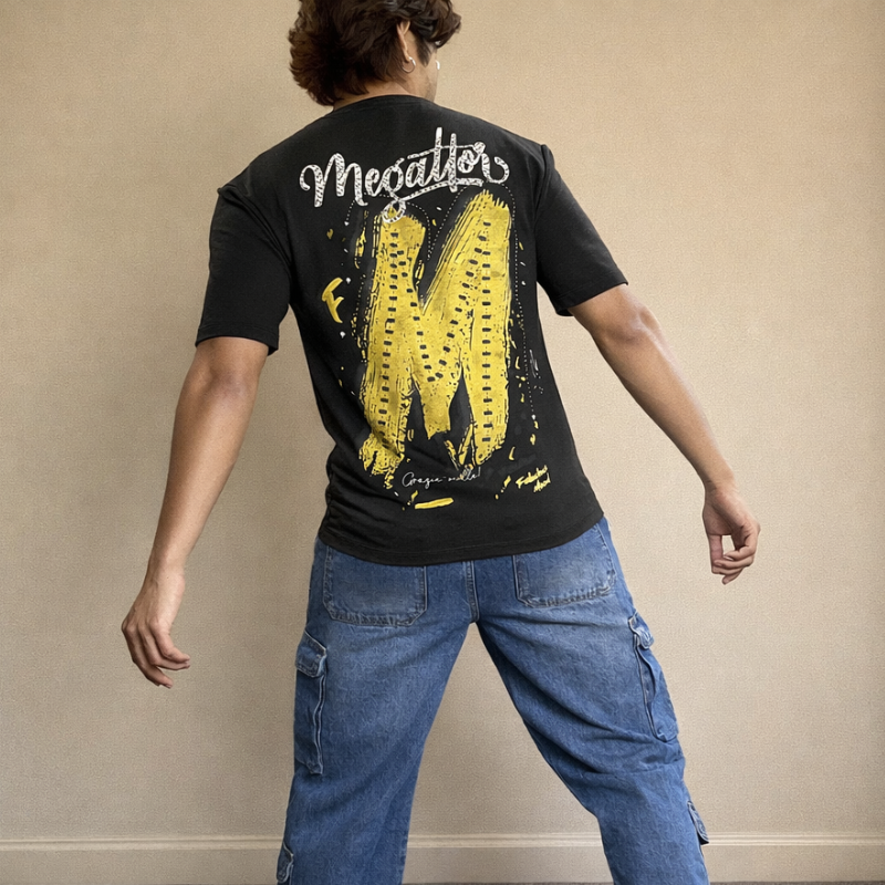 A timeless black T-shirt with a contemporary print that balances simplicity and style. Made from breathable fabric, it’s ideal for daily wear, outings, and casual evenings.