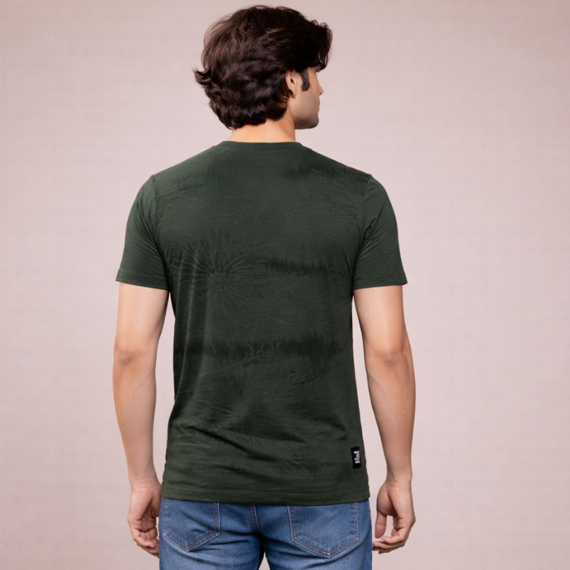 Stay stylish with this olive green abstract printed T-shirt for men. Soft cotton fabric, modern silhouette, ideal for daily wear.