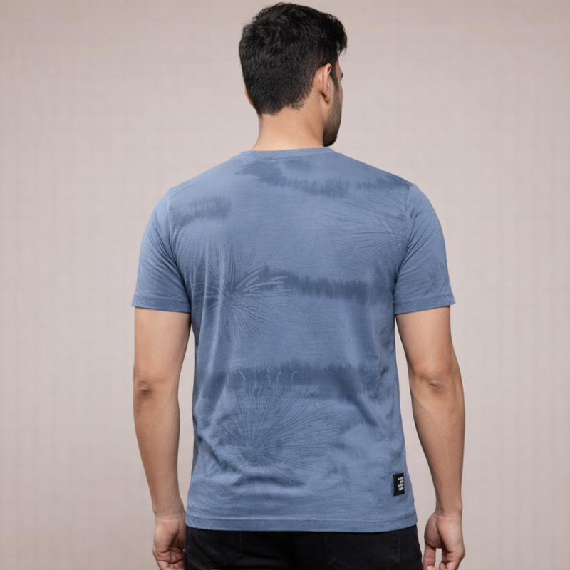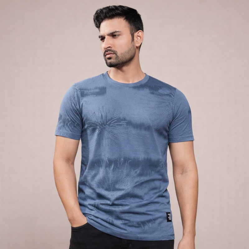 Shop men’s teal cotton T-shirt with subtle texture and “Forgive to Forget” print. Soft fabric, modern fit, perfect for everyday casual wear.