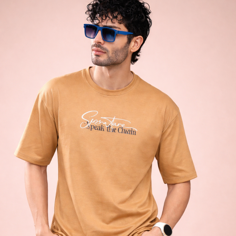 Stand out in effortless style with this mustard graphic print t-shirt. Featuring a stylish script design across the chest, this tee adds a bold yet refined touch to your everyday wardrobe. Crafted from soft, breathable fabric, it ensures all-day comfort with a relaxed fit. Perfect for pairing with dark denim or casual trousers for a confident, modern look.