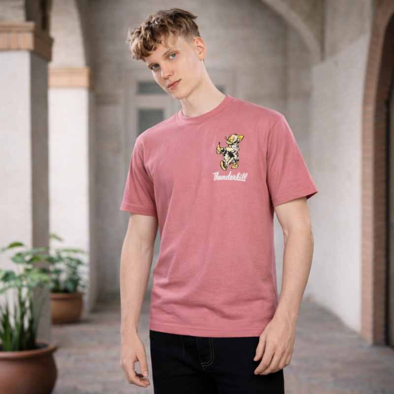 Add character to your casual look with this pink Thunderbill graphic t-shirt for men. Soft cotton fabric with a fun illustrated print for everyday wear.
