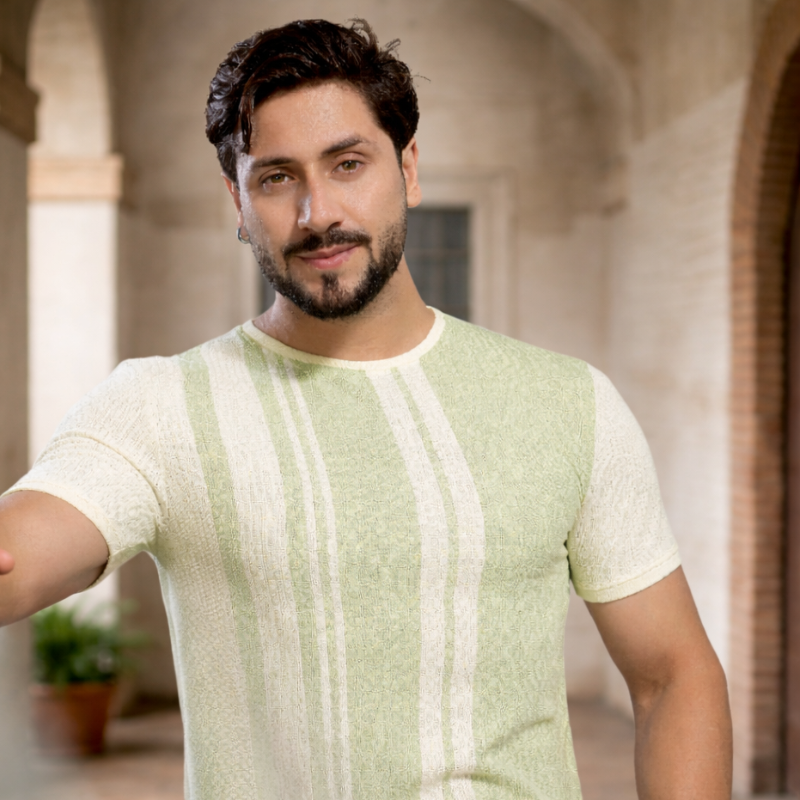 Fresh, minimal, and modern, the Sage Flow Textured Tee is crafted for men who appreciate subtle sophistication. Its calming green tone paired with delicate vertical textures delivers a refined yet relaxed look that transitions seamlessly from day to evening.